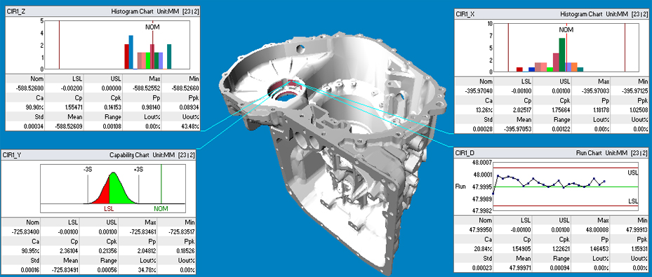 變速箱殼體是變速器結(jié)構(gòu)中的重要組成部件,起到支撐、保護(hù)齒輪傳動(dòng)機(jī)構(gòu)的作用。殼體性能好壞直接影響整個(gè)變速箱結(jié)構(gòu)的性能,間接地影響整車的使用性能。隨著變速箱新技術(shù)的應(yīng)用以及整個(gè)社會(huì)環(huán)保意識(shí)的與日俱增,變速箱向尺寸小、質(zhì)量輕的方向發(fā)展。這就對(duì)殼體的性能提出了更高的要求,從而對(duì)殼體的加工能力和檢測水平要求更嚴(yán),尤其是對(duì)測量設(shè)備的穩(wěn)定性和精度準(zhǔn)確性要求更為重要, 以保證變速器使用性能更佳。